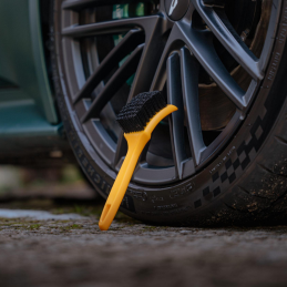 Willy Willy trabaja en sinergia con títulos poderosos. Para el trabajo completo, se recomienda asociarlo con un cepillo más pequeño para los calibradores de freno y un cepillo de detalle para las tuercas de las ruedas.