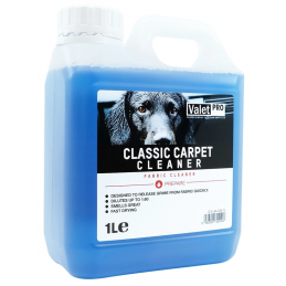 La Cleaner tappeto classico Valetpro Appositamente formulato per pulire profondamente i tappeti, i tappeti e i sedili in tessuto. La sua composizione delicata ma efficace consente di rimuovere macchie ostinate, la polvere incrostata e le tracce della vita di tutti i giorni senza danneggiare le fibre.