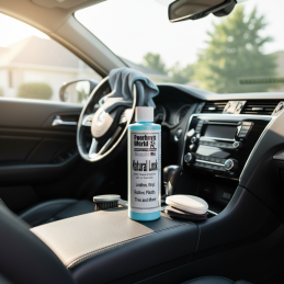 Poorboy's Natural Look é um limpador à base de água contendo um filtro UV para interiores do veículo.